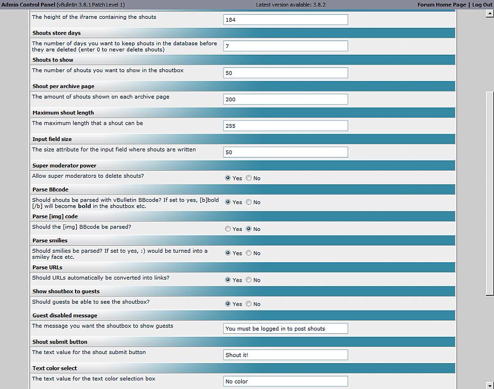 6. go to vbulletin options -> select "dion dev shoutbox v2.1 options" at the very bottom of the list