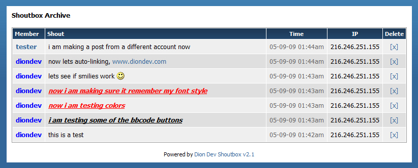 - new archive layout that uses a table with name, message, time, and ip & delete for admins/supermods