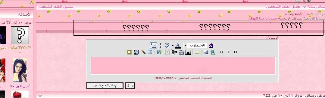 اخواني ركبت ستايل جديد لكن خيارات العضو من الملف الشخصي غير ظاهرة مثل رسائل الزوار معلومات عني الاحصائيات الأصدقاء المخالفات معلومات الاتصال