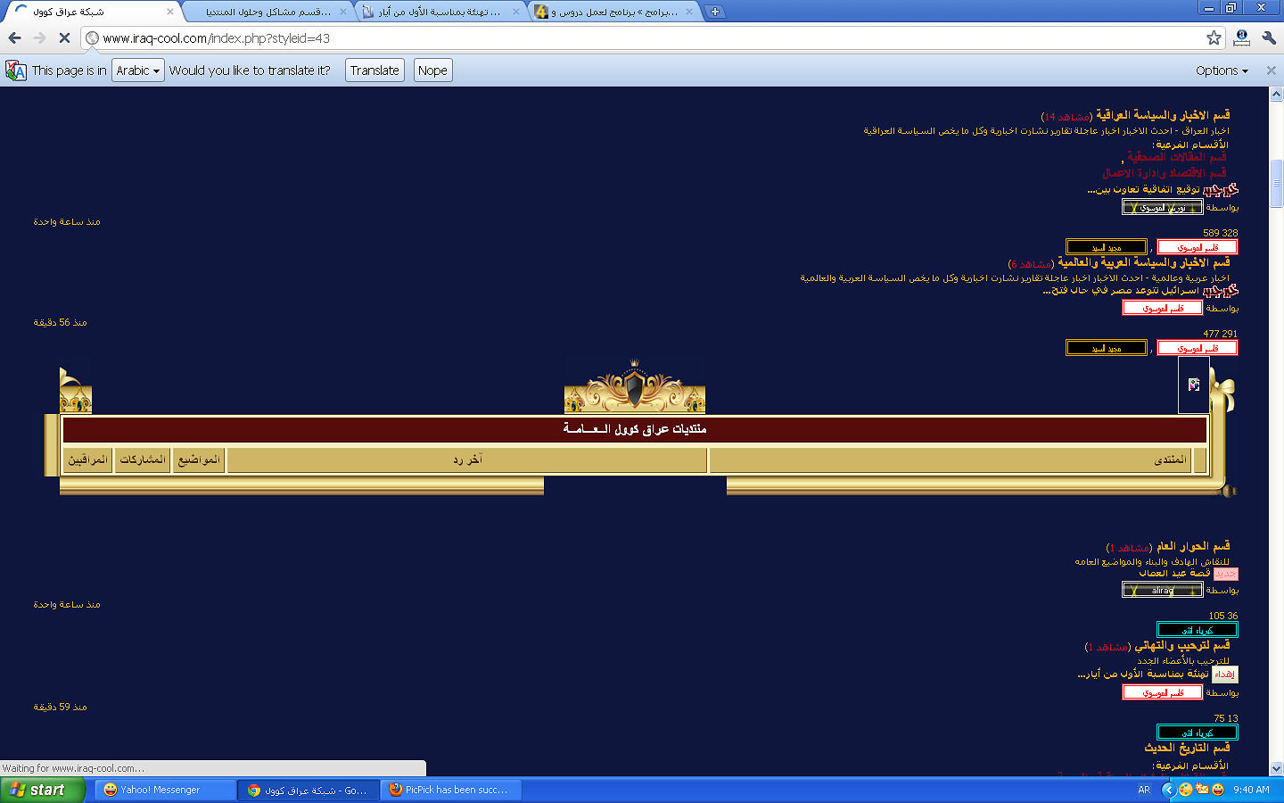 وهذا رابط الستايل للمعاينة والمشكلة فقط في الصفحة الرئيسية اما الاقسام والمواضيع ما في اي مشكلة http://www.iraq-cool.com/index.php?styleid=43