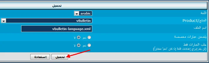 مع مراعاة إسم الملف vbulletin-language.xml.