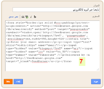الشكل النهائى لأداة اشتراك الزوار فى خلاصات المدونة عبر البريد الالكترونى