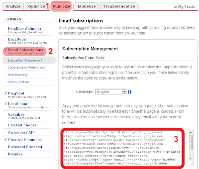 كى تنشئ و تتحكم فى خلاصات مدونتك , يلزمك استعمال أحد الخدمات المتوفرة لهذا الغرض كـ ( Feed Burner ) على سبيل المثال , و التى أفضلها أنا شخصياً لتبعيتها لجوجل أيضاً فيسهل تكاملها مع باقى الخدمات , و إذا كنت لم تنشئ الخلاصات الخاصة بمدونتك بعد , فاتبع الخطوات التالية :
