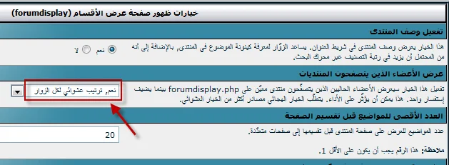 وعليكم السلام ورحمة الله وبركاته أدخل على: لوحة التحكم > خيارات المنتدى > خيارات المنتدى > خيارات ظهور صفحة عرض الأقسام (forumdisplay) طبق الخيار التالي: وبالتوفيق ..