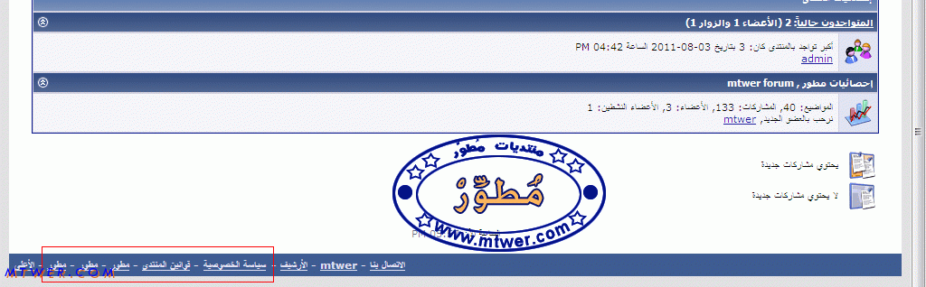 - لوحة تحكم الإدارة -> خيارات المنتدى -> خيارات الروابط الإضافية في الفوتر Footer