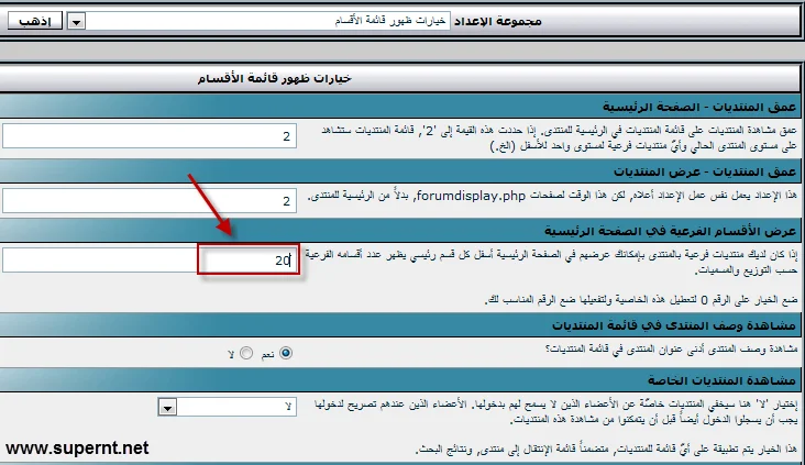 أدخل على لوحة التحكم > خيارات المنتدى > خيارات المنتدى > خيارات ظهور قائمة الأقسام