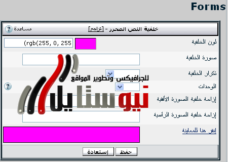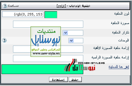 الخاص بخلفية ادخال الكتابة فى كلا من محرك البحث و عنوان انشاء موضوع جديد والكلمات الدلالية والاشتراك فى المواضيع وخلفية اضافة استطلاع وكذلك لون خلفية اختيار الاستيل واختيار اللغة