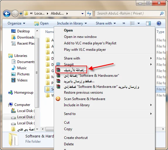 A Abdul Rahim [ أعضاء فى القلب ] 30 مايو 2011 3,385 23 0 6 أغسطس 2011 #2 ينقل للمنتدى المناسب + تفضل الشرح: أولا.. عليك بتحميل برنامج WinRaR ومن ثم تستطيبه على الجهاز بالخطوات المعتاده صفحة التحميل https://www.rarlab.com/download.htm وهذا الرابط لتحميل البرنامج باللغة العربية https://www.rarlab.com/rar/wrar561ar.exe ثانيا.. بعد تسطيب البرنامج كليك يمين على الملف المراد ضغطه ثم ثالثا .. المرفقات 1.webp 41.5 KB · المشاهدات: 9,357 2.webp 20.3 KB · المشاهدات: 8,484