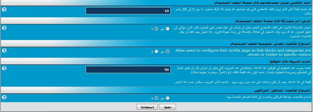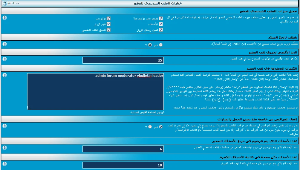 أدخل لوحة الإدارة > خيارات المنتدى > خيارات الملف الشخصي للعضو ||
