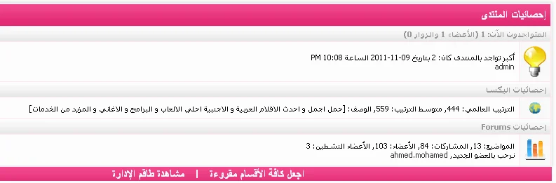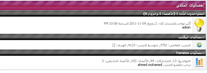 يظهر ترتيب المنتدى بالاحصائيات اسفل الصفحة الرئيسية