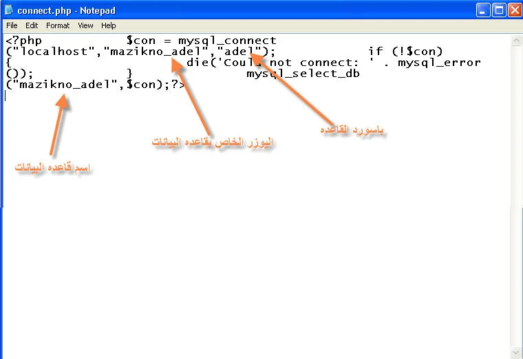 3- نقوم بتعديل ملف connect حتى يتم الاتصال بالقاعدة
