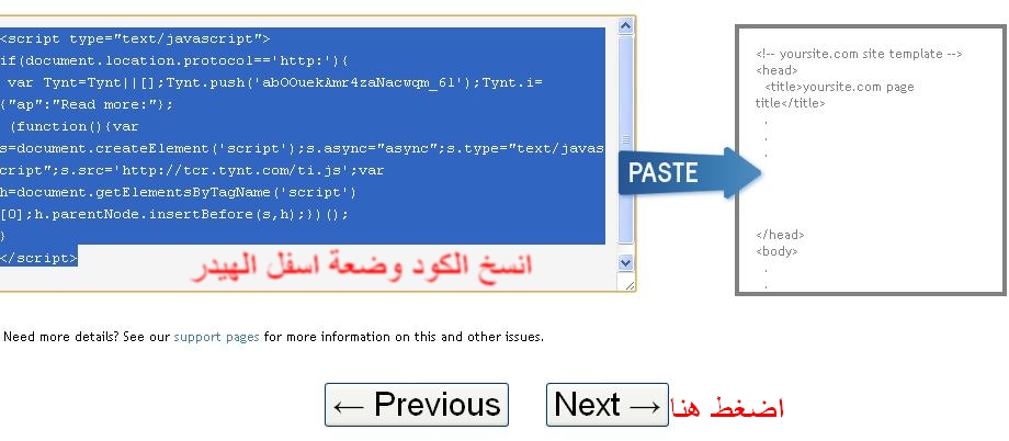 --------> ثم انسج الكود فى اخر القالب