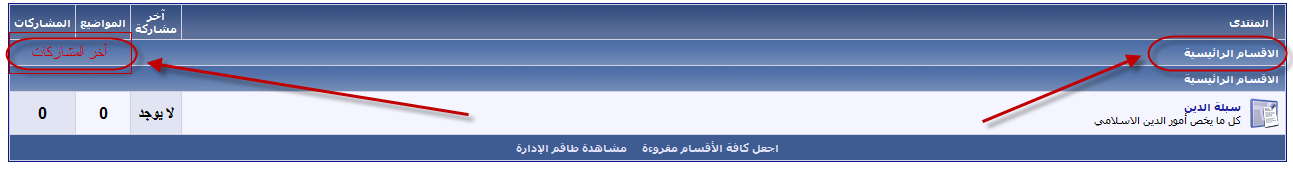 السلام عليكم ورحمة الله عندي طلب بسيط أريد مثل الصورة التالية يعني أضع اسم الاقسام الرائيسية يمين وكلمة آخر المشاركات الجهة اليسار الكود أريد أوضعه في ومشكورين ...