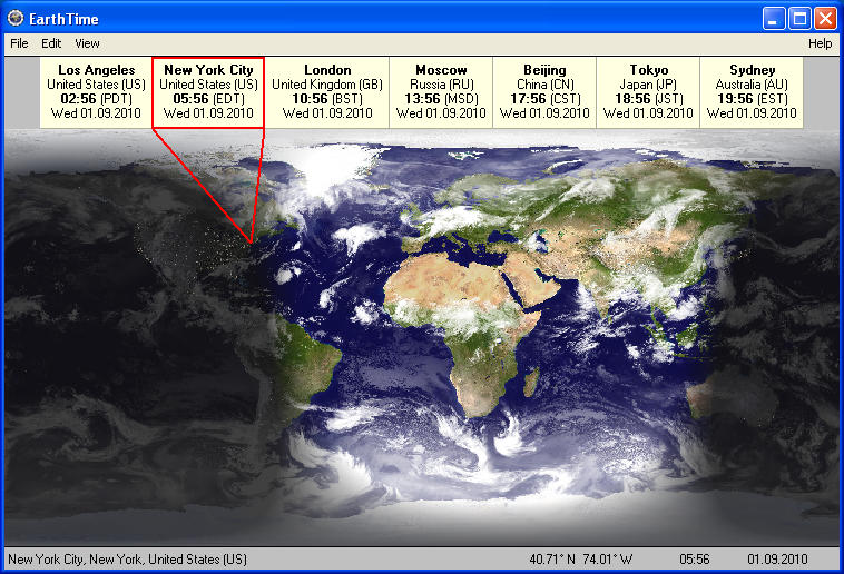 إن EarthTime لديه قاعدة بيانات مدمجة داخله لأكثر من 3000 دولة حول العالم لكن المستخدم لديه القدره أيضاً على أضافه أى عدد من الأماكن الأخرى .