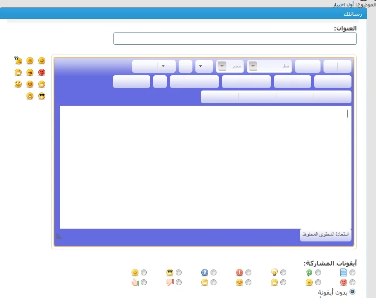 اخواني أرجوكم أجدولي حل لقد اختفت أيقونات صندوق محرر النصوص بمنتدياي النسخة 4.1.9 اذ أضفت الصندوق الماسي الخامس وجدت به بعض المشاكل فسحبته فضهر هذا المشكل صورة توضيحية: