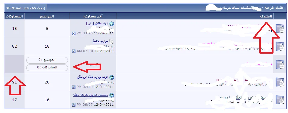 بس الاقسام الفرعيه فيها مشكلها في خانة المواضيع والمشاركات
