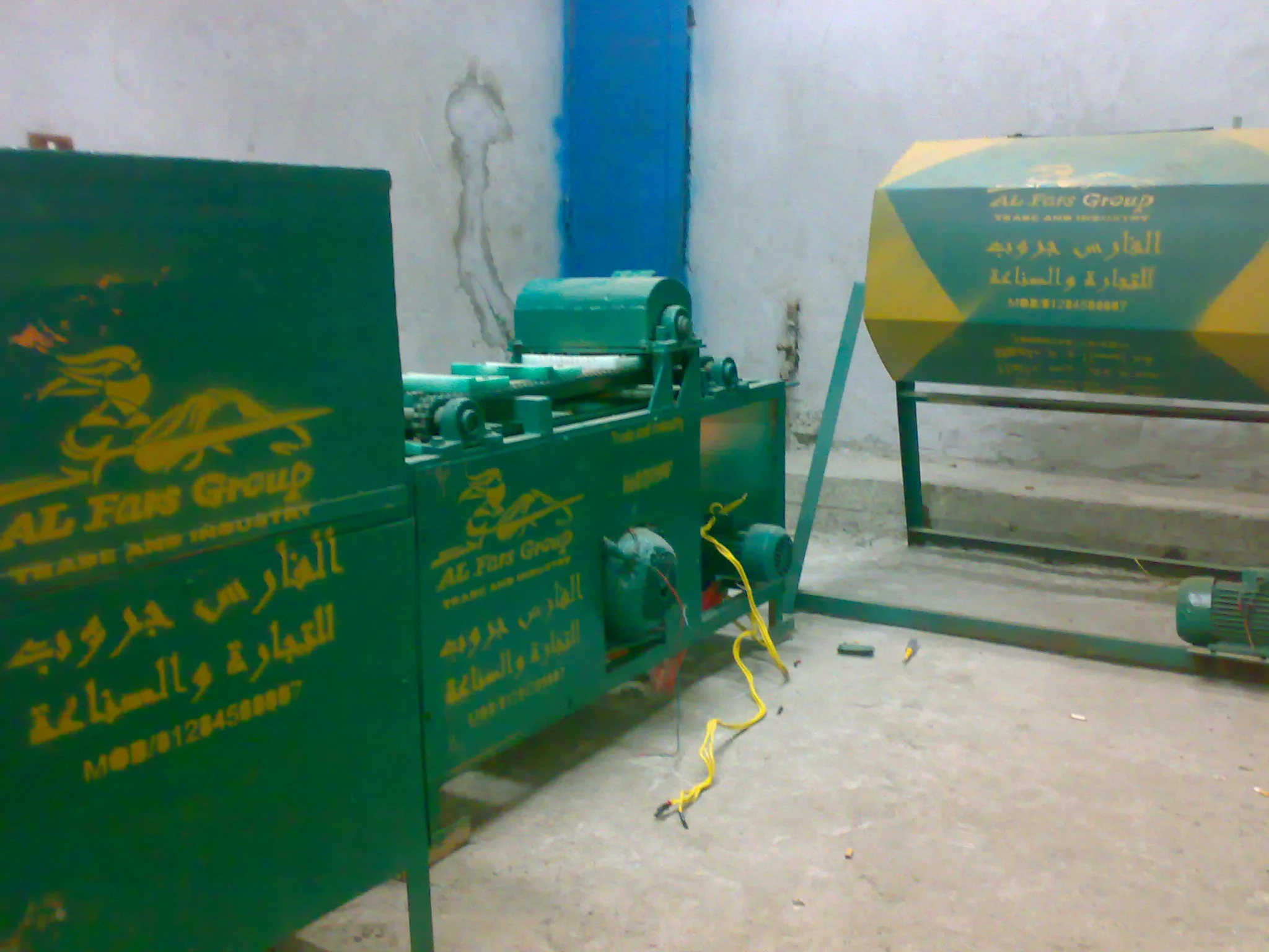 * ماكينة حلية وخدشه عمود 40ملي قرص 8ملي ماتور صيني ملف نحاس 2 حصان 1400 لفة بقادوس نشارة وبتقفيل خارجي صاج 2 ملي بوجه طلاء برايمر+ وجه طلاء دوكو ممتاز