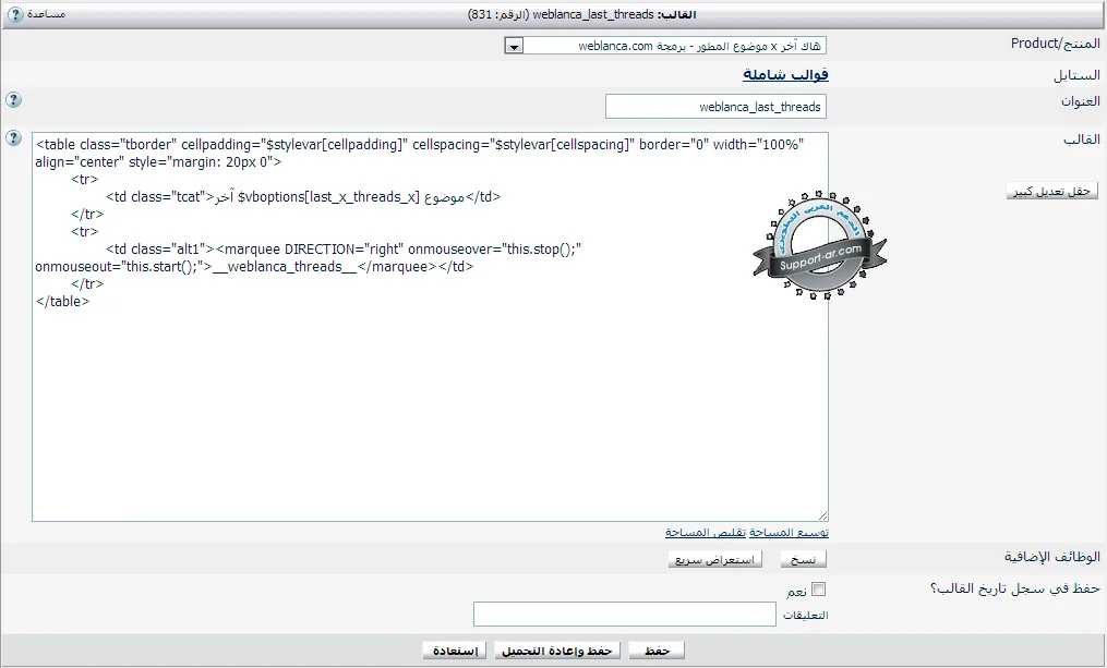 3. 'last_x_threads_groups' : اعداد ارقام المجموعات التي يمكنها مشاهدة الشريط، النوع : textarea