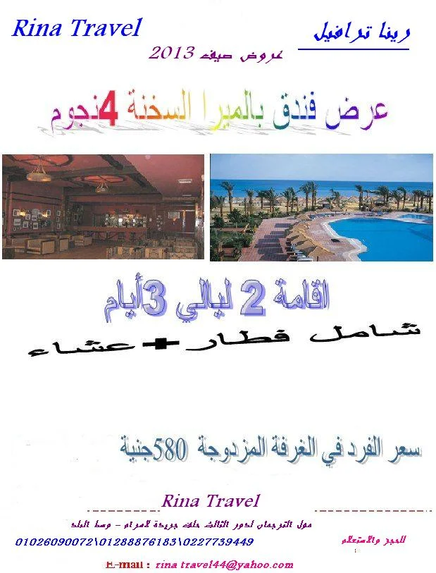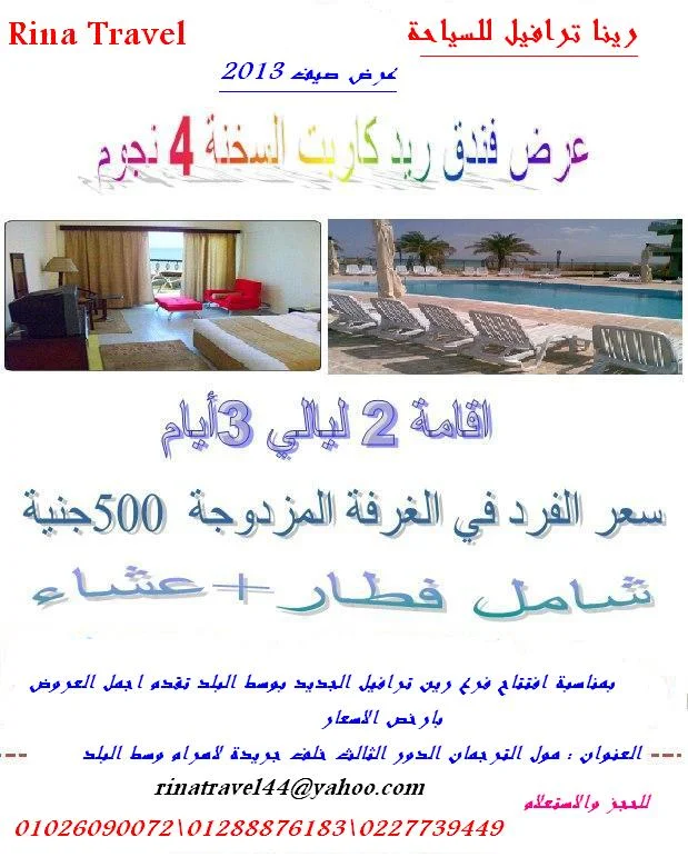 [font="]اسأل عن اقوى عروض [/font][font="]صيف 2013 مع شركة رينا ترافيل[/font][font="] بارخص الاسعار وباجمل الاماكن فى شرم الشيخ والغردقة والعين السخنة بمناسبة افتتاح الفرع الجديد بوسط البلد[/font]