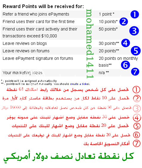 6- تحصل على 20 نقطة مقايل ترك اشهار للبنك في توقيعك (20 نقطة= 10 دولار).