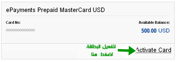 وبعد كده لازم تفعل الماستر كارد بعد مايوصل كما موضح بالشرح