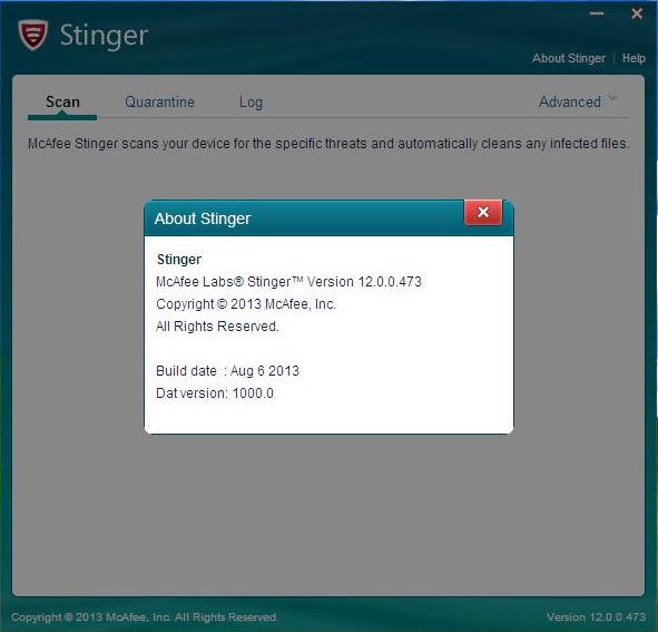أداة شركة ميكافي للكشف عن الفيروسات العنيدة اصدار تاريخ 6/8/2013-McAfee Labs Stinger 12.0.0.473
