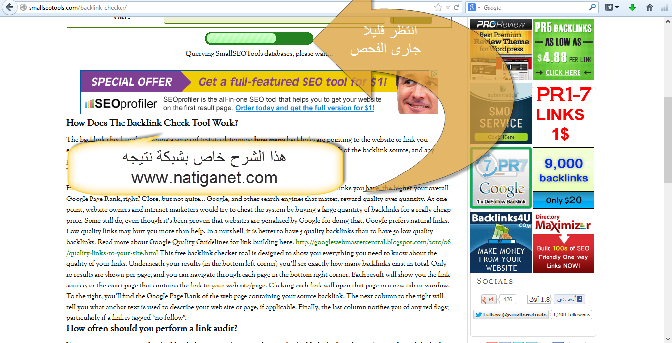 هنا تنتظر لثوانى حيث يجرى فحص الموقع ثم ستاتيك الصوره التاليه