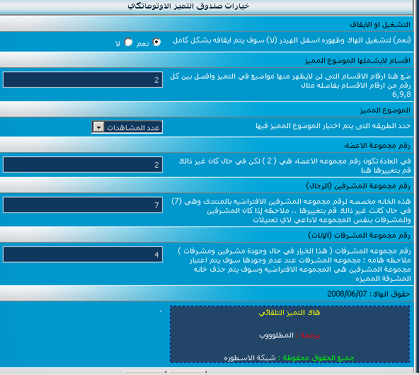 ثم تعديل خيارات الهاك من خيارات المنتدى حسب مايناسبك
