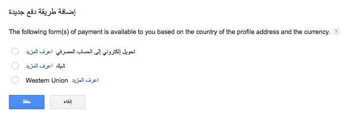 يمكنك اختيار المصرف الذي تفضله لتسلم دفعات AdSense بشرط أن تمتلك حسابًا في هذا المصرف.