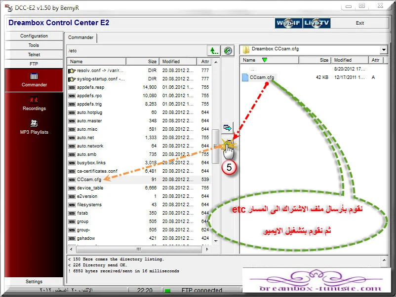 1 - في حالة الحصول على ملف CCcam.cfg جاهزة به بيانات الاشتراك