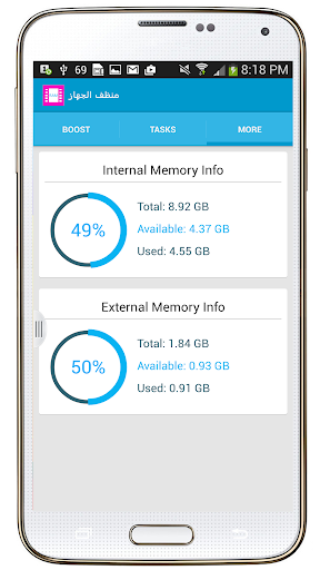 تطبيق منظف الجوال , لعمل مسح للذاكرة وتنظيف الجهاز لديك من الملفات المؤقتة , وتفريغ الذاكرة من الملفات والبرامج التي لا تلزم , للعمل على تسريع الجهاز لديك , وايضا معرفة المساحة الفارغة في جهازك والمساحة الممتلئة والعمل على زيادة المساحة لديك في الجهاز , ويمكنك ايضا معرفة حجم الذاكرة الداخلية وعمل تنظيف لها .