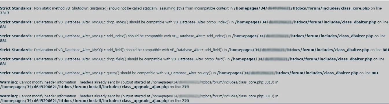 Strict Standards: Declaration of vB_Database_Alter_MySQL::add_index() should be compatible with vB_Database_Alter::add_index() in /homepages/34/sinchi/htdocs/forum/includes/class_dbalter.php on line 881
