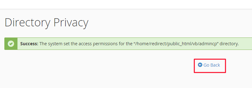 سترى الآن رسالة تفيد بنجاح العملية يشير إلى أن كل شيء حدث بشكل صحيح. انقر فوق الرابط للرجوع "Go Back" الموجود أسفله.