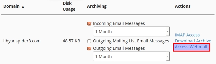 1- اضغط على Access Webmail لعرض الرسائل المؤرشفة من خلال الويب ميل.