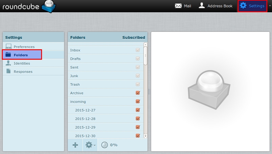 اضغط علي Folder Action لعرض جميع صناديق البريد.