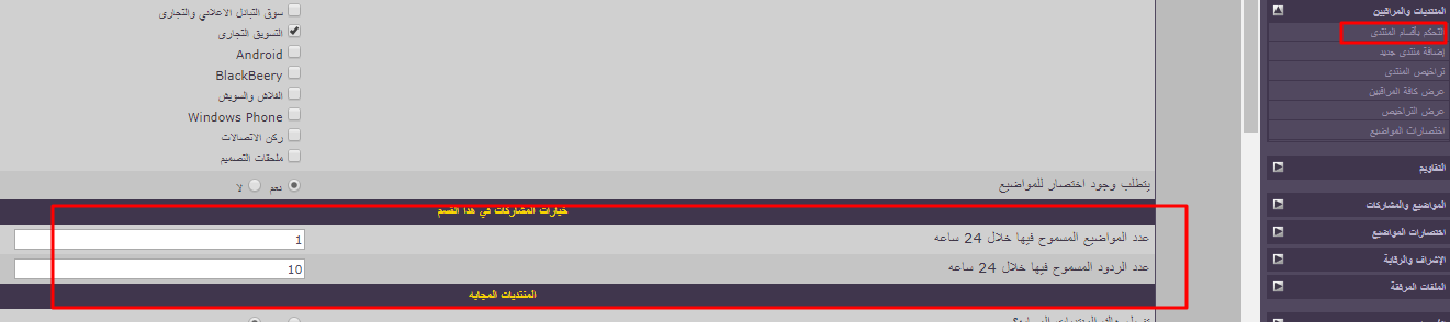 • تستطيع تحديد عدد المشاركات والردود في كل قسم خلال 24 ساعة