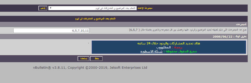 التحكم بعدد المشاركات والردود في اليوم لكل قسم