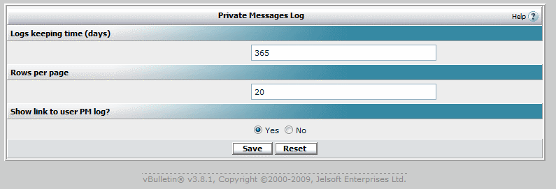 • Select required settings in “Vbulletin options >> Private Message Log”