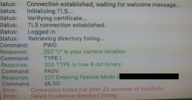 عند الدخول لأى حساب ببرنامج FTP وليكن مثلا Filezilla والبيانات صحيحة 100% وحتى تحصل انه تم تسجيل الدخول
