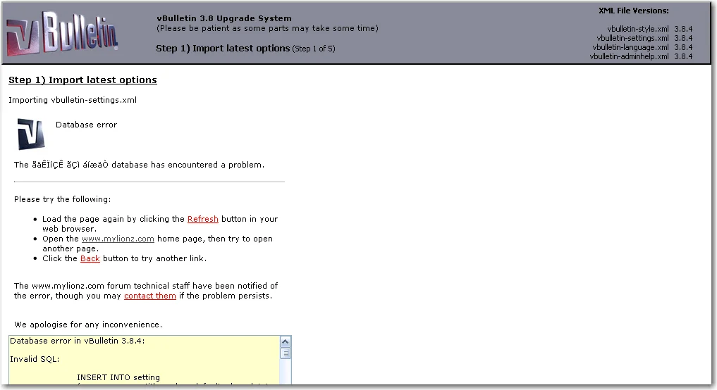 Database error in vBulletin 3.8.4: