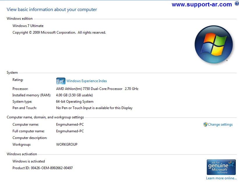 السلام عليكم كراك windows 7 وهوا من افضل الكركات الذي يعمل على جميع الاصدارات كراك سفن ويعمل على كافة اصدارته هذى صورة من الكمبيوتر الشخصى بعد التجربه التحميل بالمرفقات
