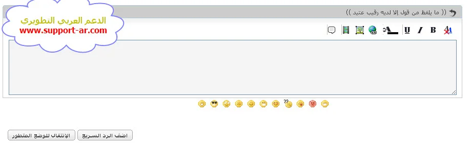 اسم الهاك :- هاك وضع الابتسامات اسفل المحرر فى المحرر المتقدم , والرد السريع الاصدار 1.00