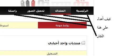 S Soubhi Ajam :: مشرف عام :: طاقم الإدارة 10 أبريل 2010 2,693 24 0 الدعم العربي www.syria-share.com 28 مايو 2010 #6 التعديل في قالب header ادخل لوحة الإدارة > الإستايلات والقوالب > البحث في القوالب ثم ابحث عن قالب الهيدر وعدل عليه كما تريد