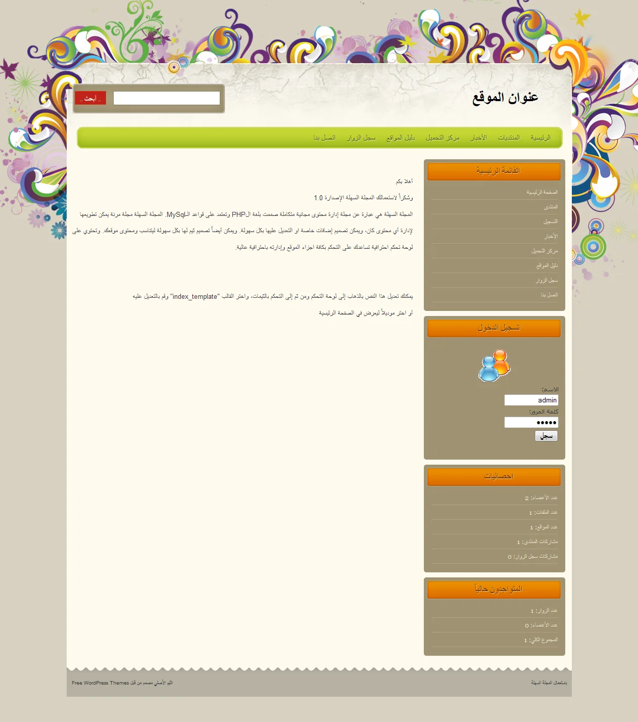 لرؤية المثال للواجهة على هذا الرابط: http://www.diy-cms.com/demo_arabic/