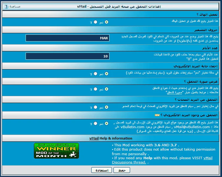هاك التحقق من البريد vMail-2.0.0 معرب للنسخة 3.8.0