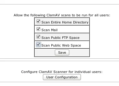 وقم بظبط اعدادات البرنامج مكا تريد تلقى على اليسار Configure ClamAV Scanner