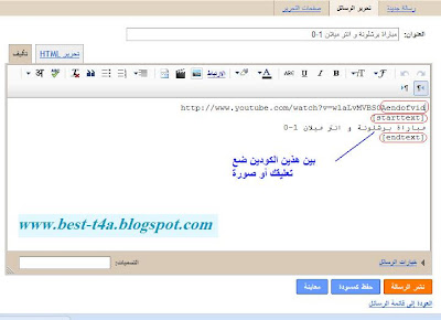 مهم و اذا كتبت أي شيء خارج الكودين فلا يظهر في الموضوع