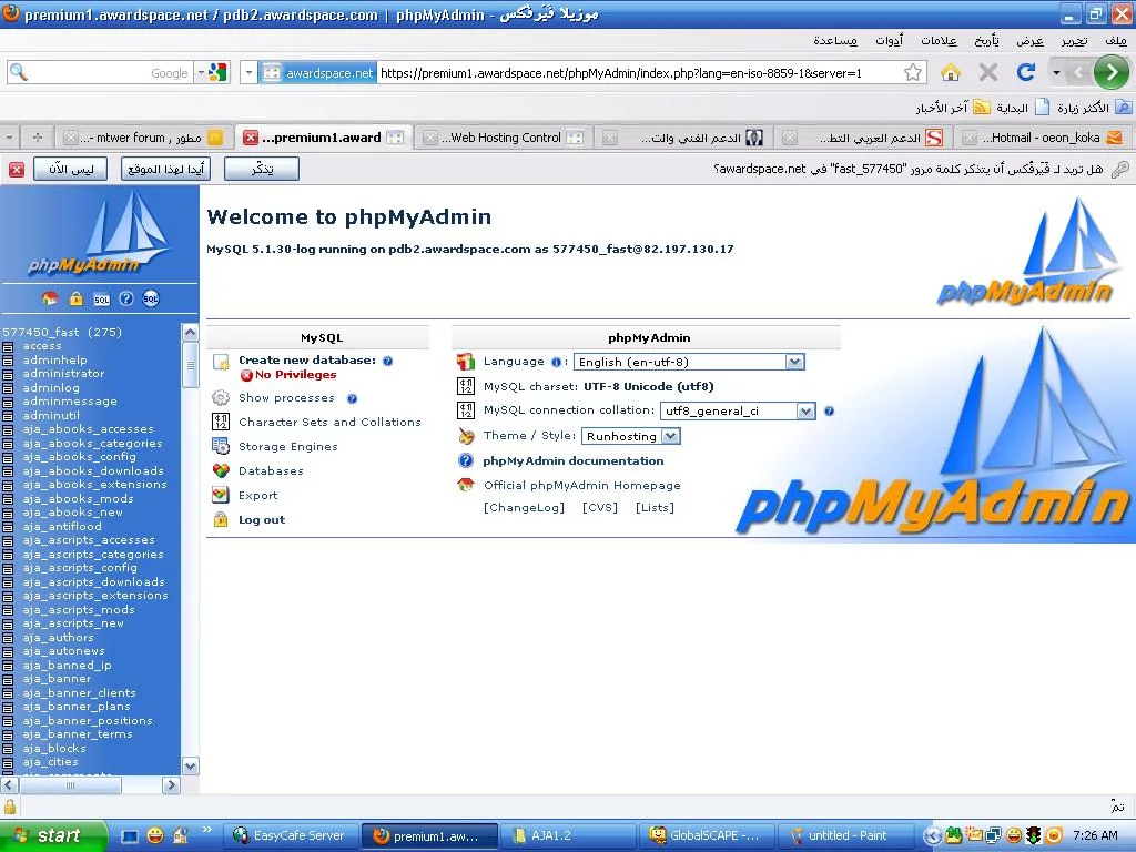 وعليكم السلام ورحمة الله وبركاته المقصود بـ prefix هى بادئة الجداول ياغالى كما ترى ان هناك جداول اعتقد انها جداول المجلة والبادئة الخاصة بها هى aja_ لكن جداول المنتدى لا يوجد بها بادئة كما ارى من الصورة لذلك اتركها فارغة كما هى